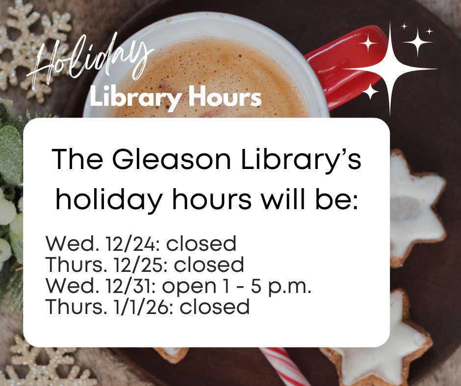 The Gleason will be closed on Wednesday, December 24th, and Thursday, December 25th for Christmas.