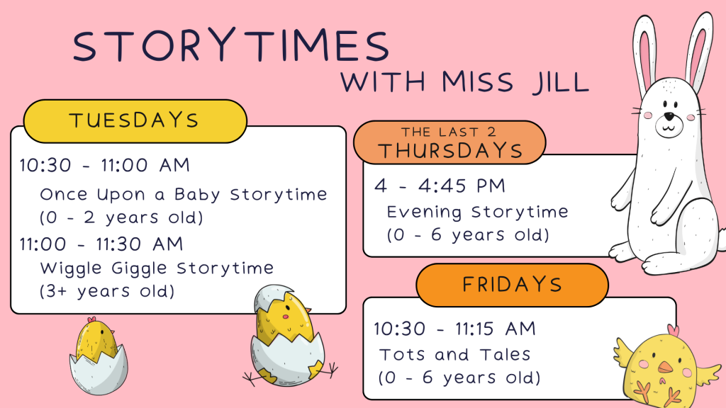 Starting January 6th, we will have four drop-in storytimes with Miss Jill each week!