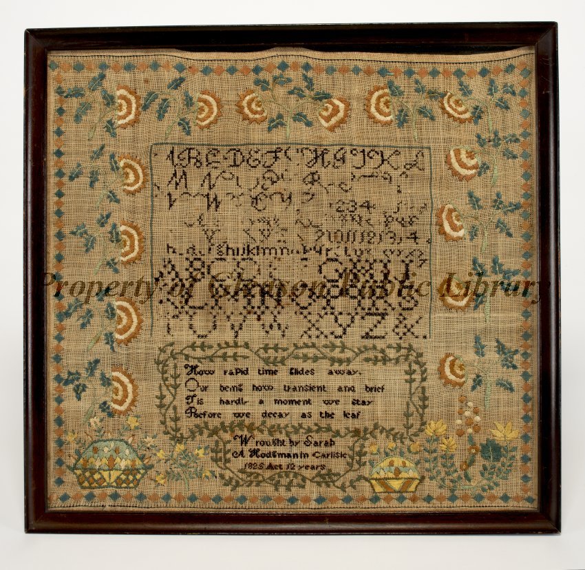 Inscription: "Wrought by Sarah A Hodgman in Carlisle 1825 Aet 12 yrs".